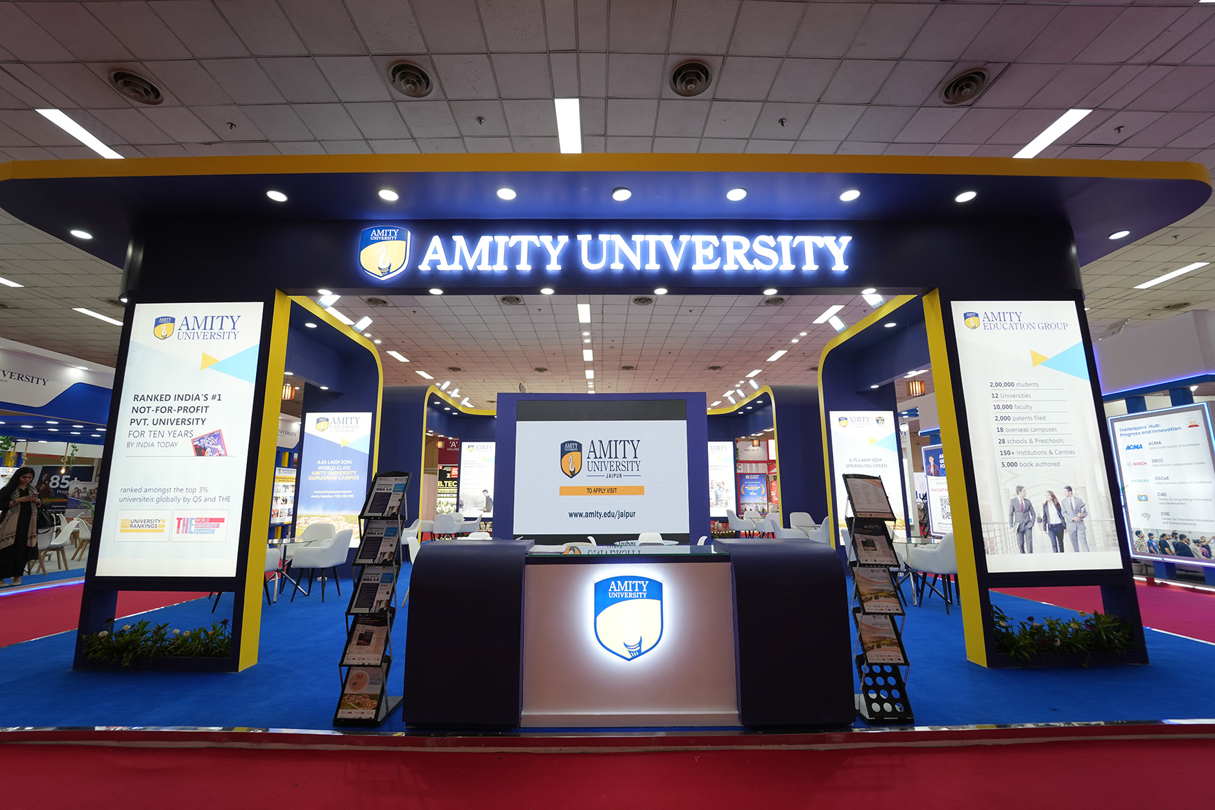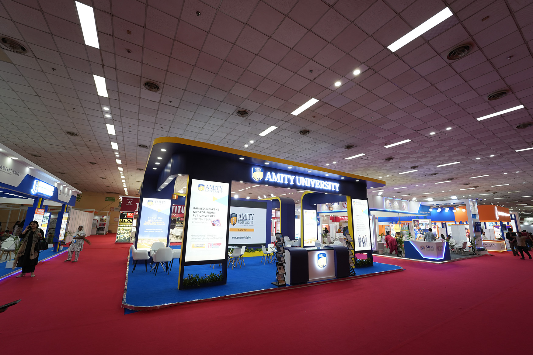 At one of the year’s biggest education expos, Creanno designed Amity University’s 125 sq. mtr. booth. We handled concept design, fabrication, branding, and production. Our layout included digital elements and visual storytelling that elevated Amity’s stature as a global education leader.