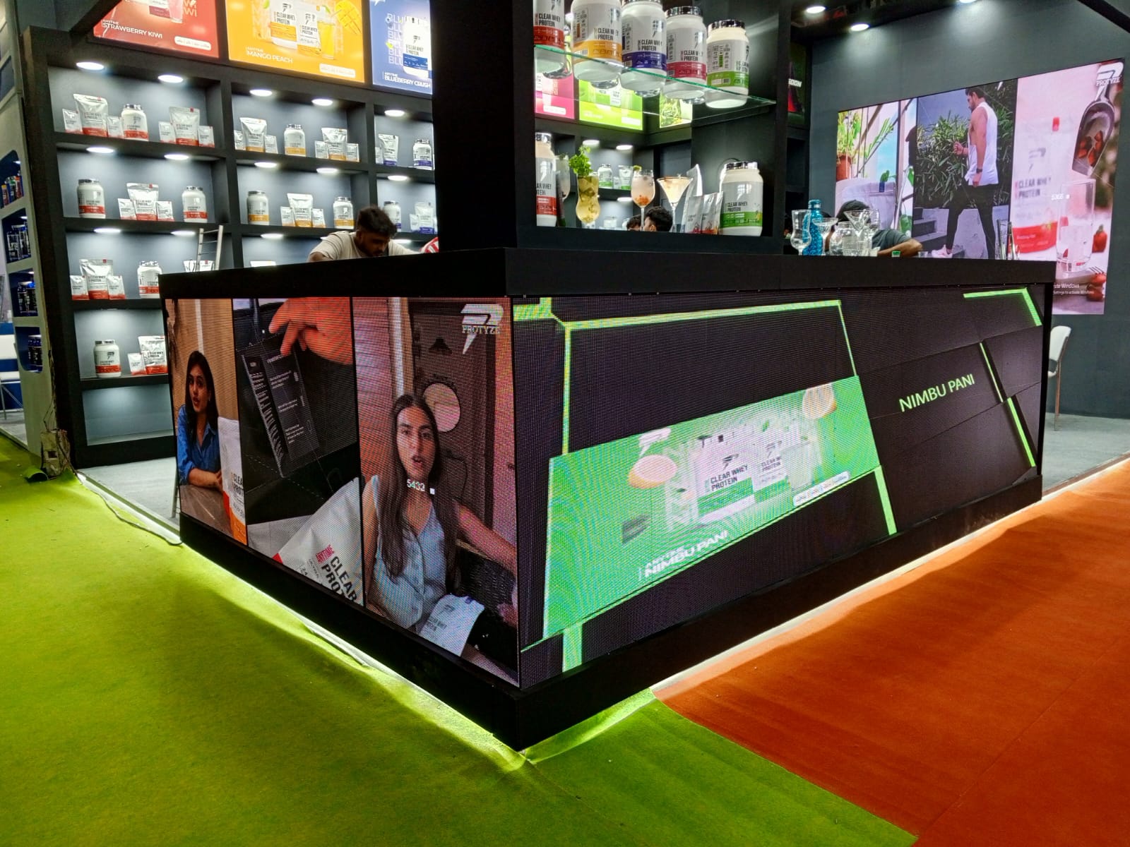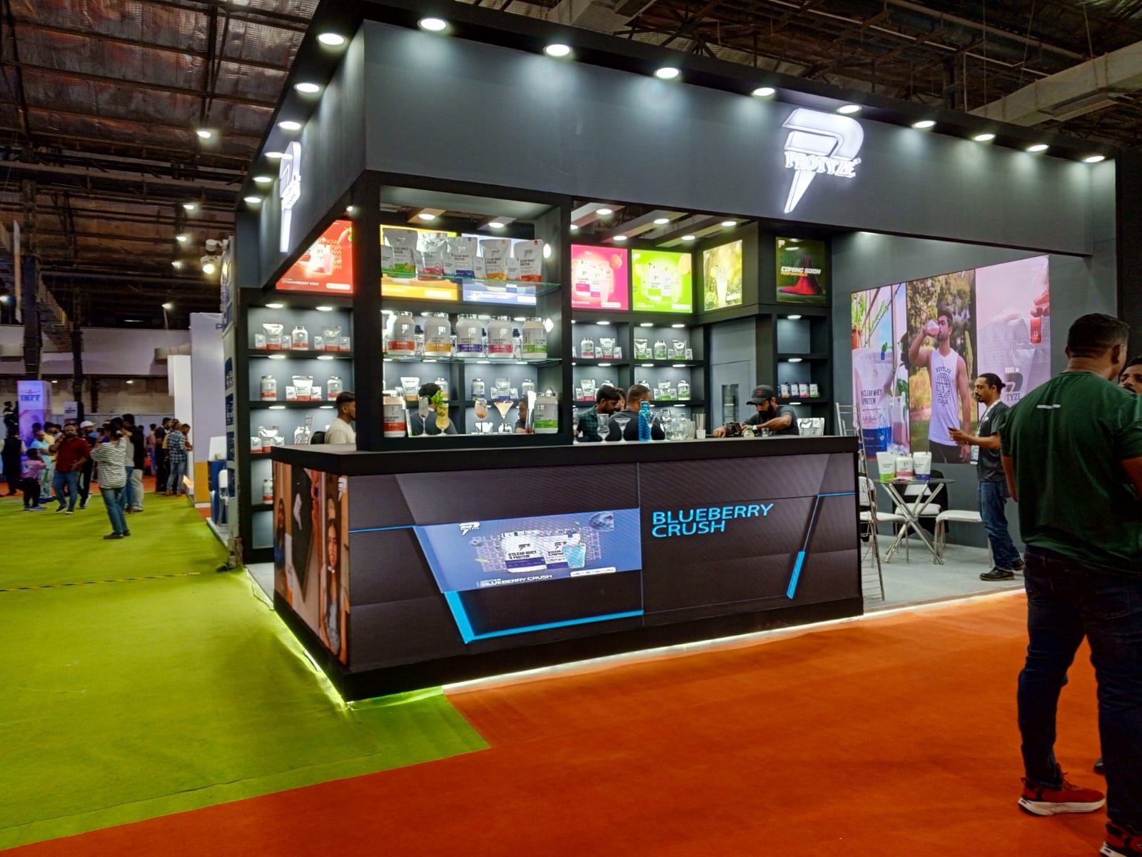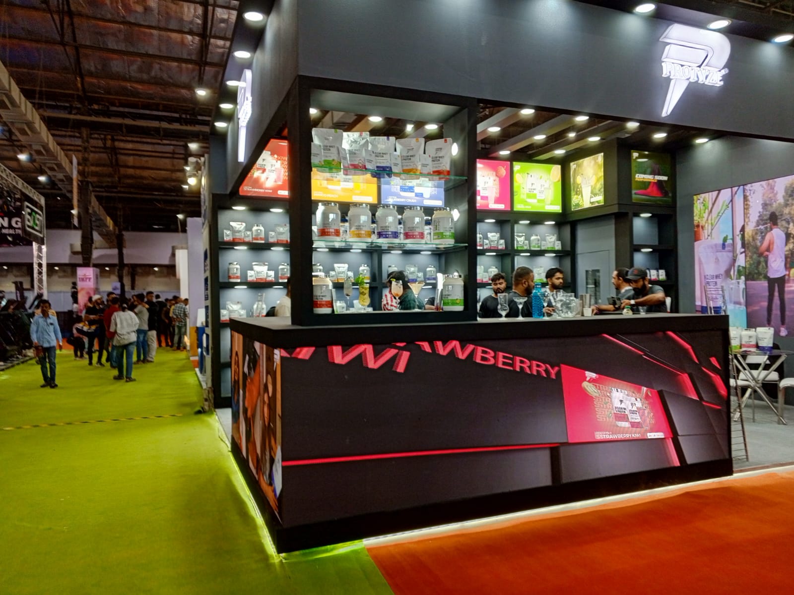 Creanno designed and produced a performance-driven booth for Protyze, using bold branding and precise layouts to emphasize product value in the sports nutrition sector.
